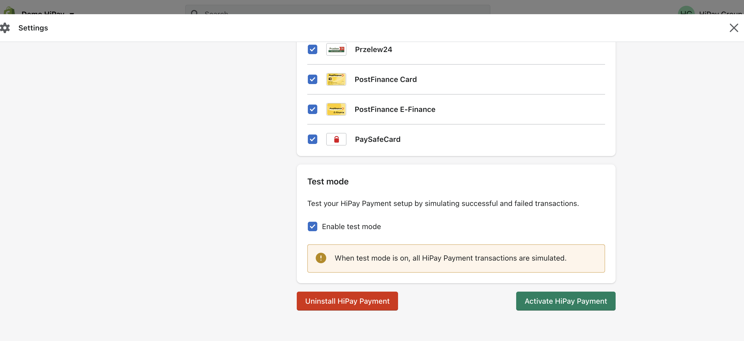 Once you have configured the HiPay Module, we strongly recommend testing it on a testing environment, by activating the Test Mode on the HiPay Module.
